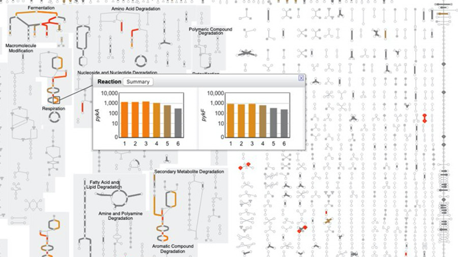 BioCyc conté genomes i reconstruccions metabòliques d’uns 18.000 organismes (bacteris, llevats, ratolí, mosca i humans), així com eines per a l’anàlisi de dades òmiques. Els usuaris poden pintar dades òmiques en diagrames de ruta i diagrames de xarxa metabòlica ampliables, realitzar anàlisis d’enriquiment i, mitjançant el tauler Omics, obtenir una visió visual integradora dels nivells d’activació de diferents sistemes cel·lulars. El programari Pathway Tools permet als científics crear reconstruccions metabòliques i models metabòlics quantitatius per a genomes seqüenciats als seus laboratoris o en altres llocs.