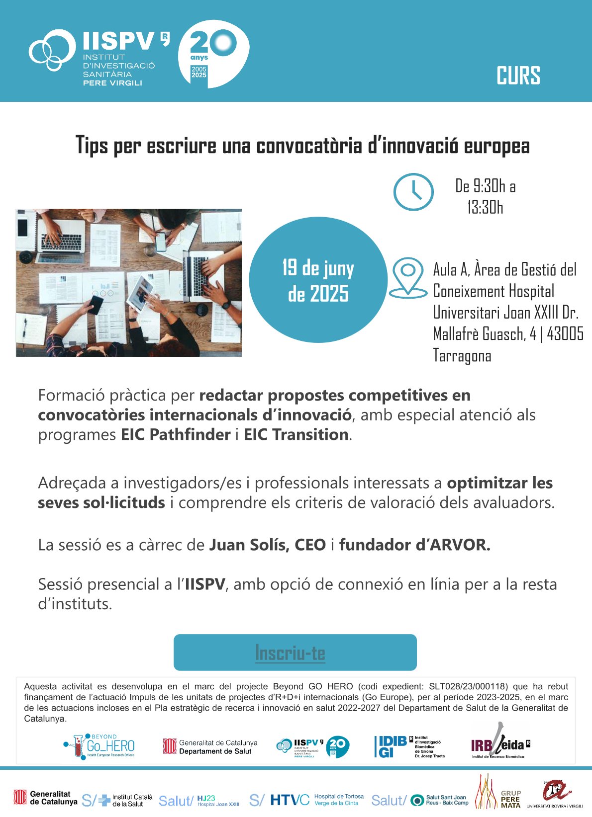 Formació pràctica per redactar propostes competitives en convocatòries internacionals d’innovació, amb especial atenció als programes EIC Pathfinder i EIC Transition.